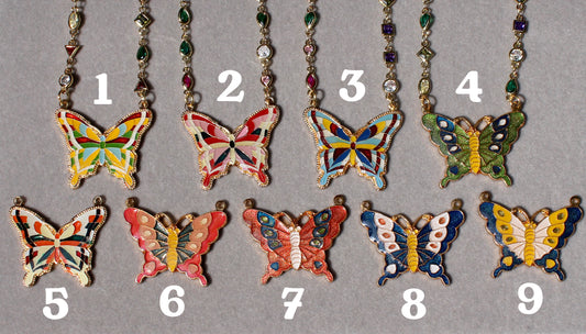 Vintage 70s Enamel Butterfly Necklace