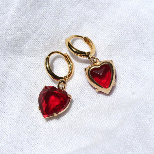 Vintage Ruby Heart Hoops