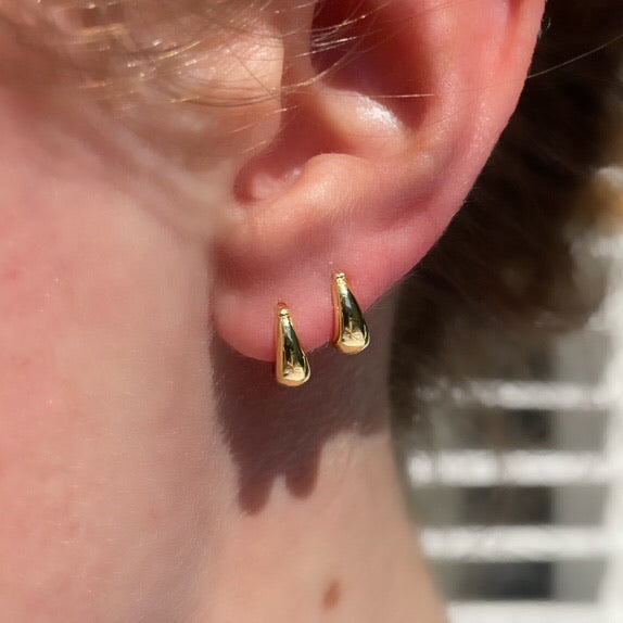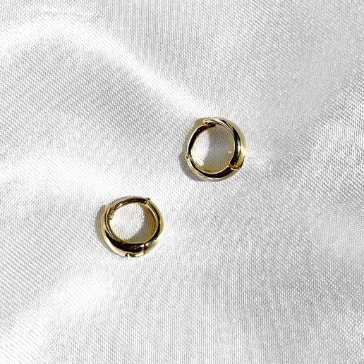 Gold plated dainty little hoops, durable for enough to leave in while sleeping, swimming, and doing everything life throws at you.