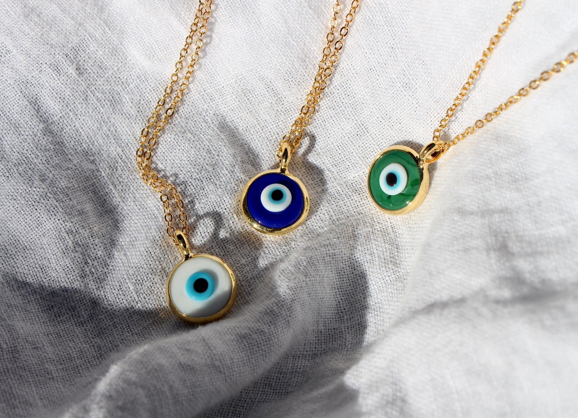 This necklace features a beautiful glass evil eye pendant, said to protect the wearer from negative energy.