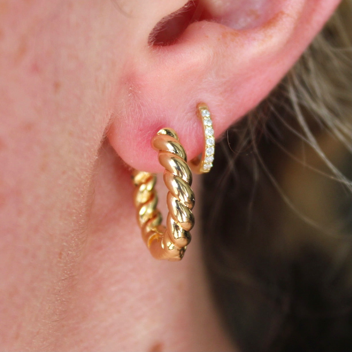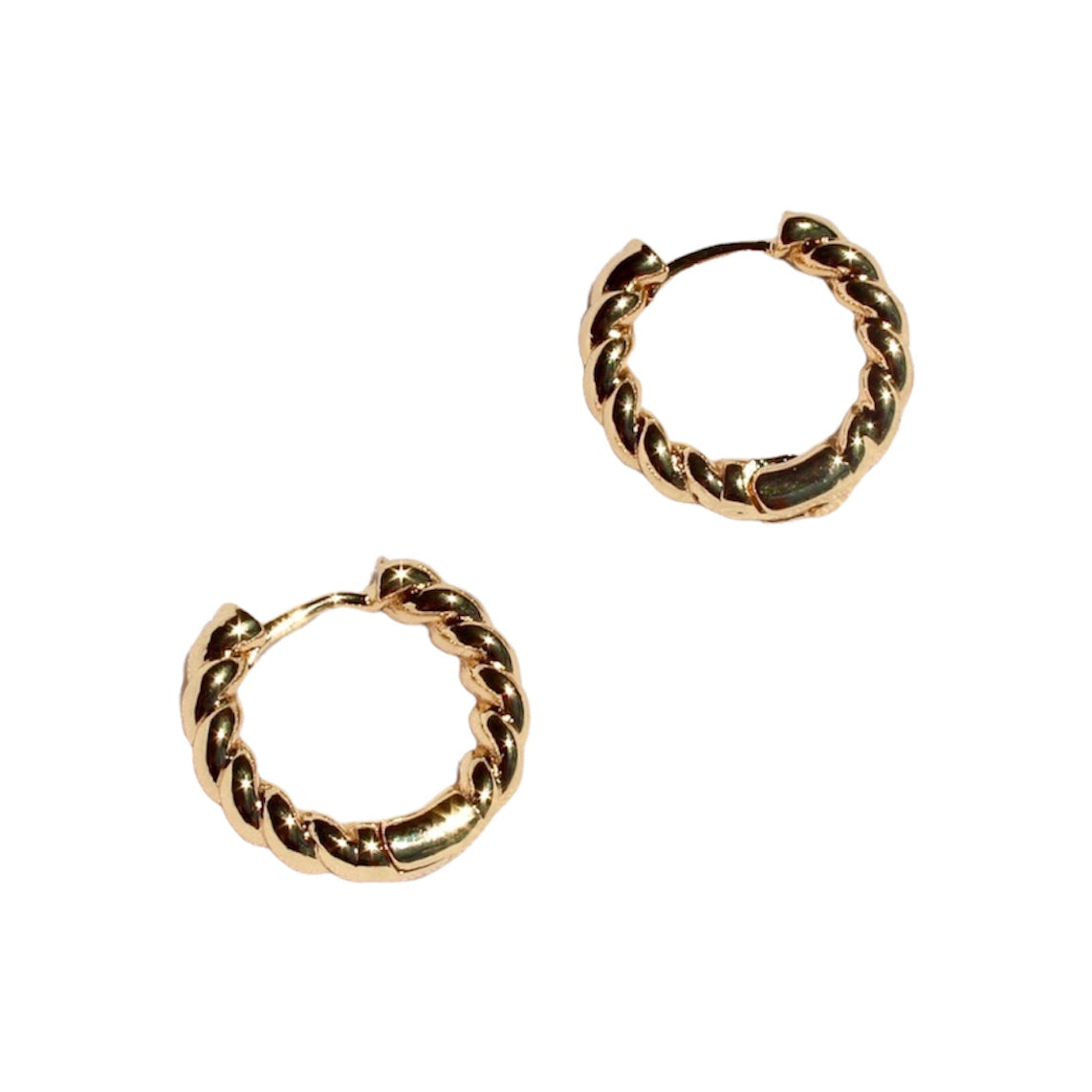 20mm gold plated hoops with twist detail. Composed of gold plated copper, lead and nickel free.