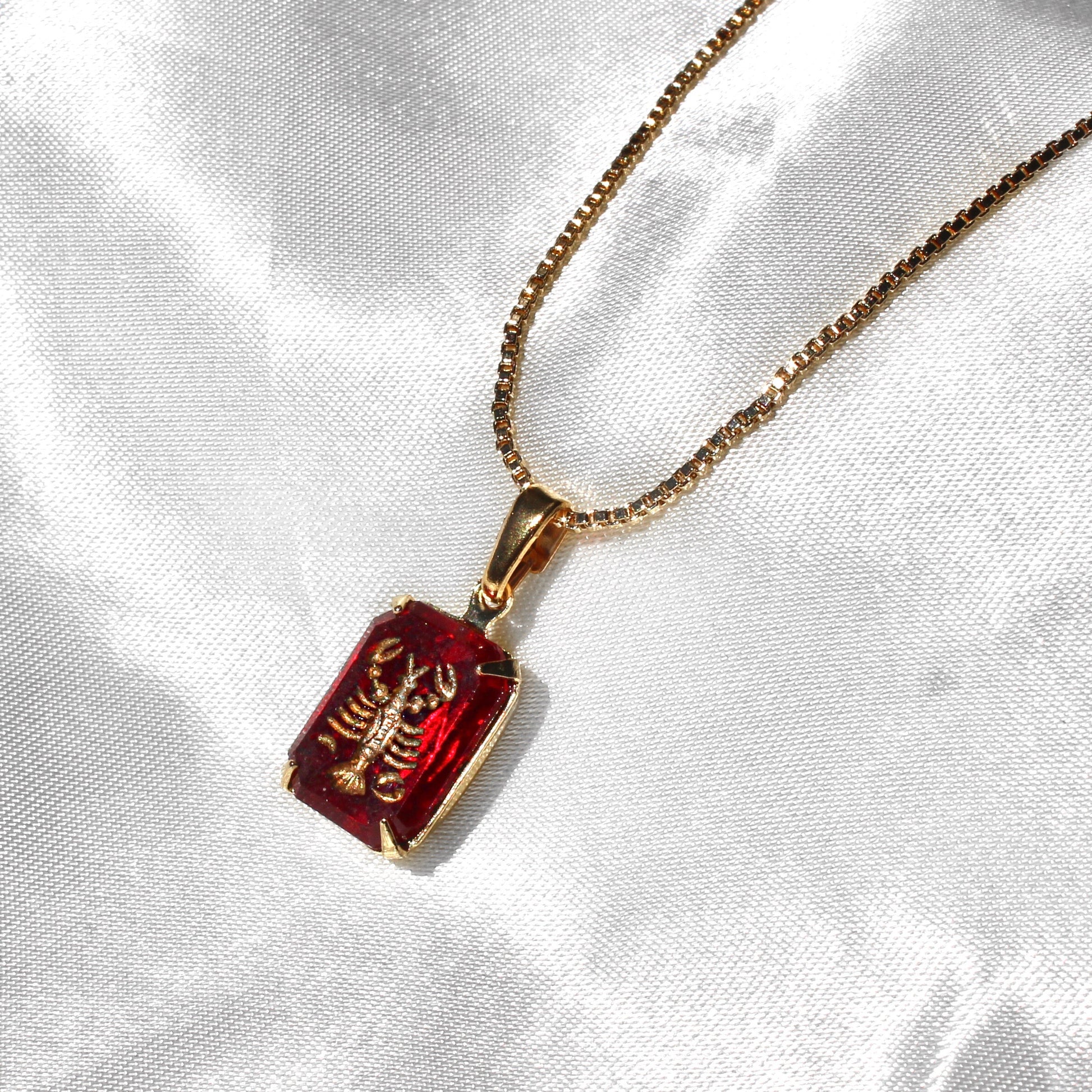 This necklace is composed of an 18k gold plated box chain with a vintage carved intaglio stone originating from western Germany and made in the 1950s.