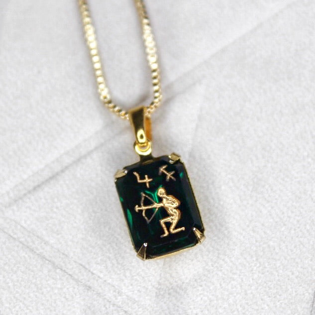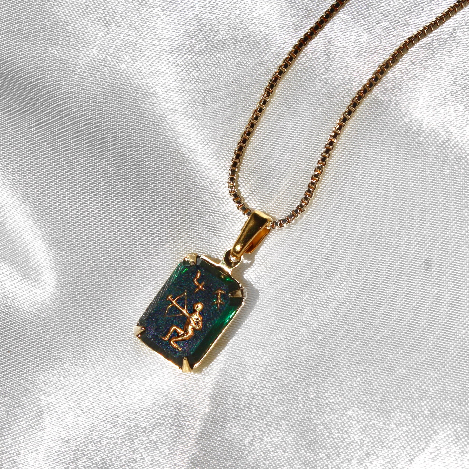 This necklace is composed of an 18k gold plated box chain with a vintage carved intaglio stone originating from western Germany and made in the 1950s.