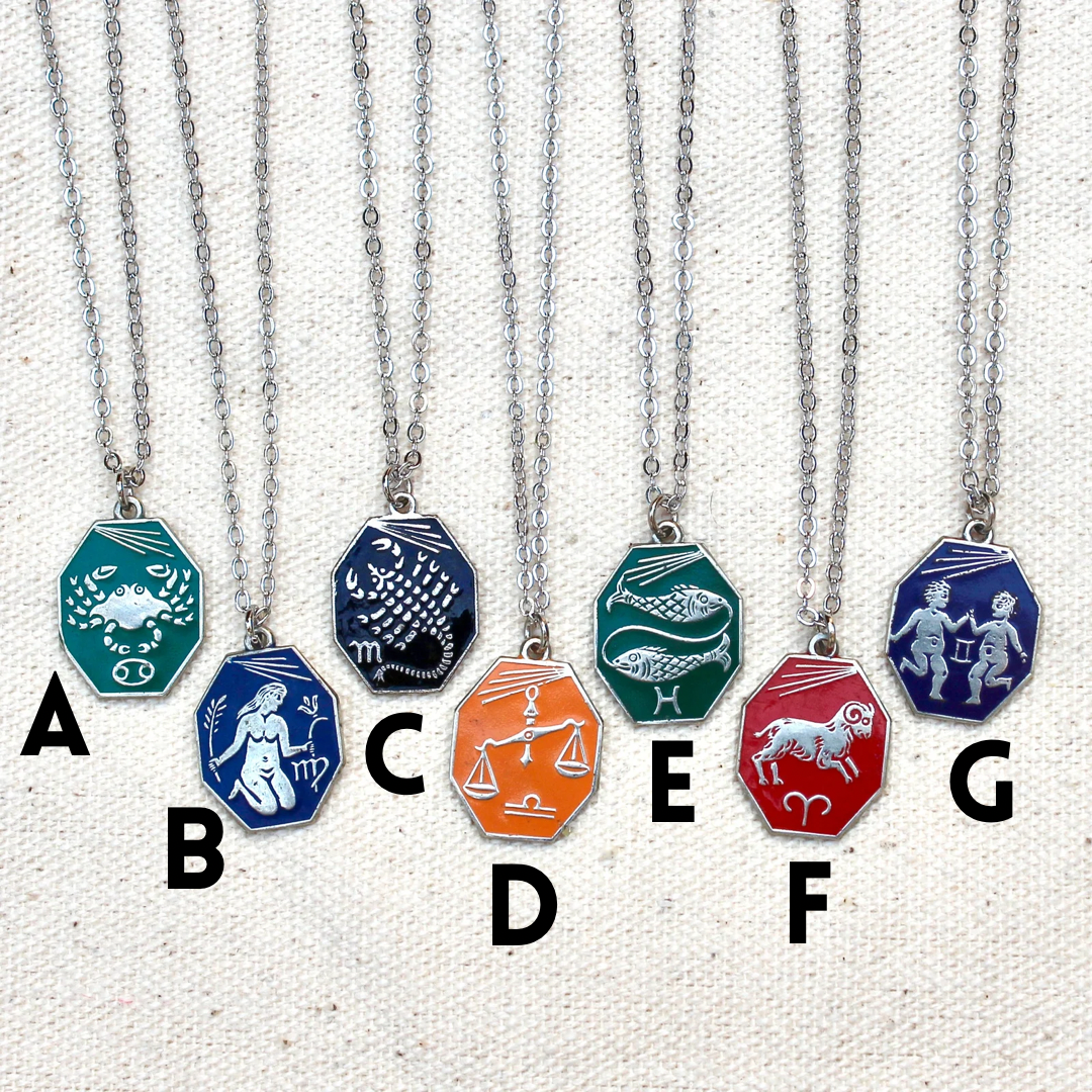 Vintage Zodiac Silver Tag Necklace