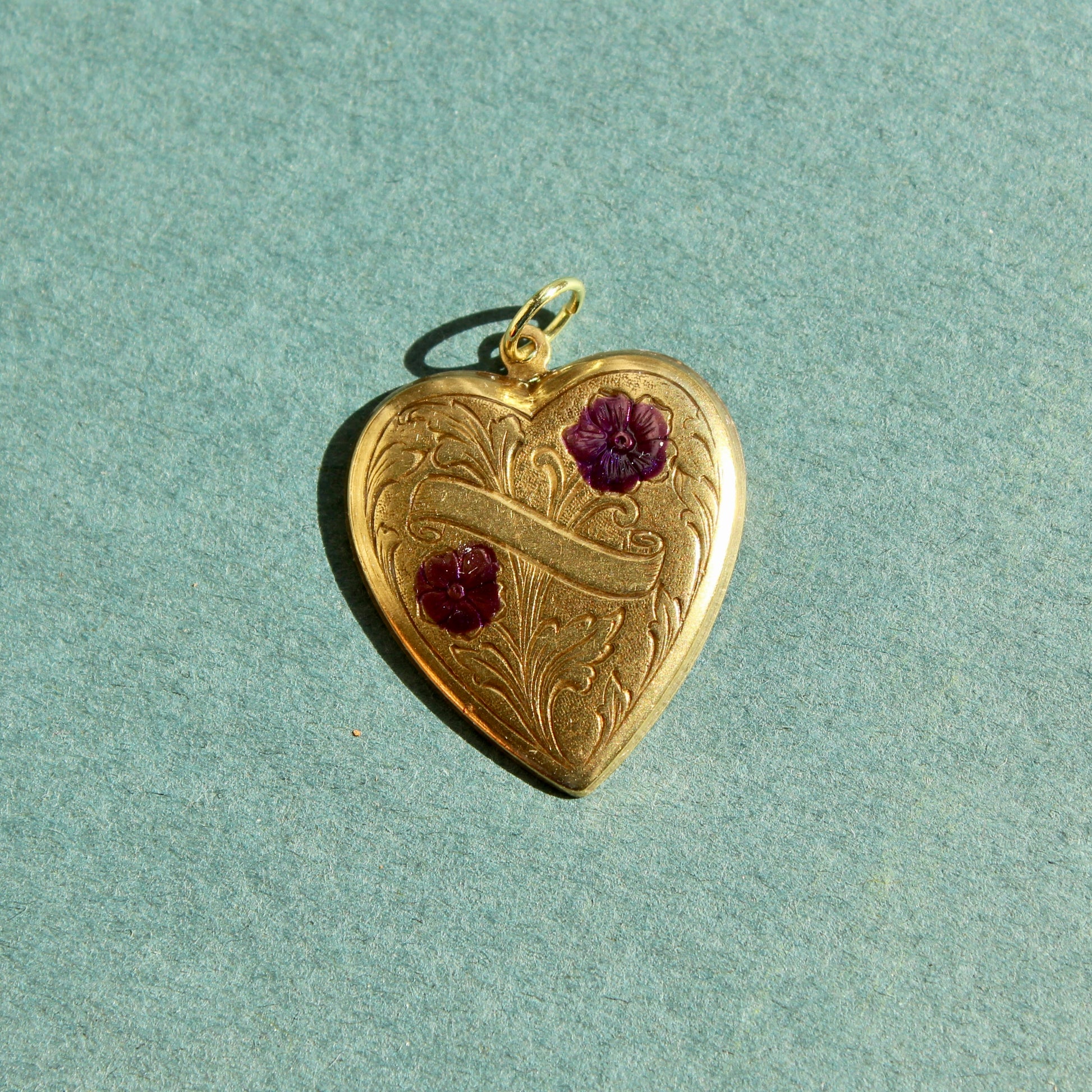 The charm is made of gold brass with purple enamel accents and comes with a jump ring for threading on your favorite necklace or jewelry making.