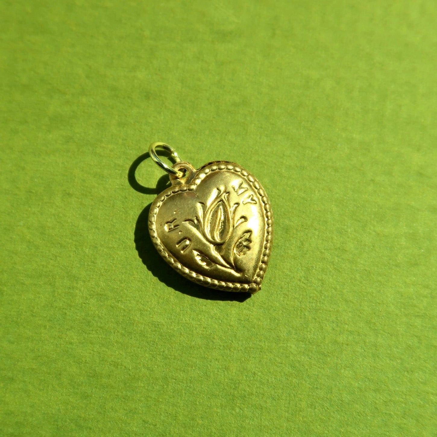 Vintage Brass Puffed Heart Charm